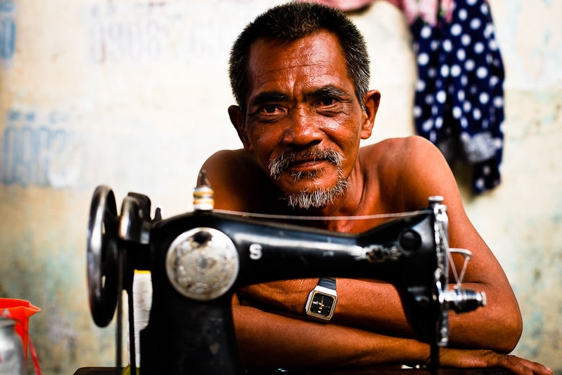This tailor was hard at work outside, near the bus station in Cholon.
