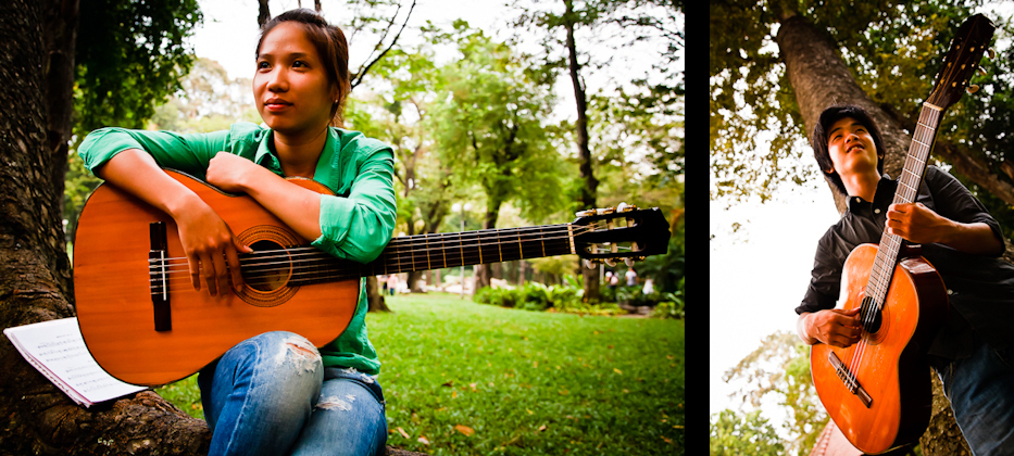 These two lovebirds are music students, practising in the park after class.
