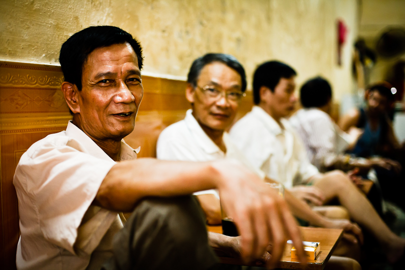 Cafe culture is alive and well in Hanoi.  I like to think of these three gentlemen as earnest cafe philosophers, but they were probably talking about women and football.