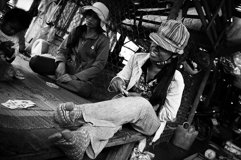 Saturday morning in Can Cau market. Mud underfoot, mist above. Women buy and sell, men smoke and drink rice wine.